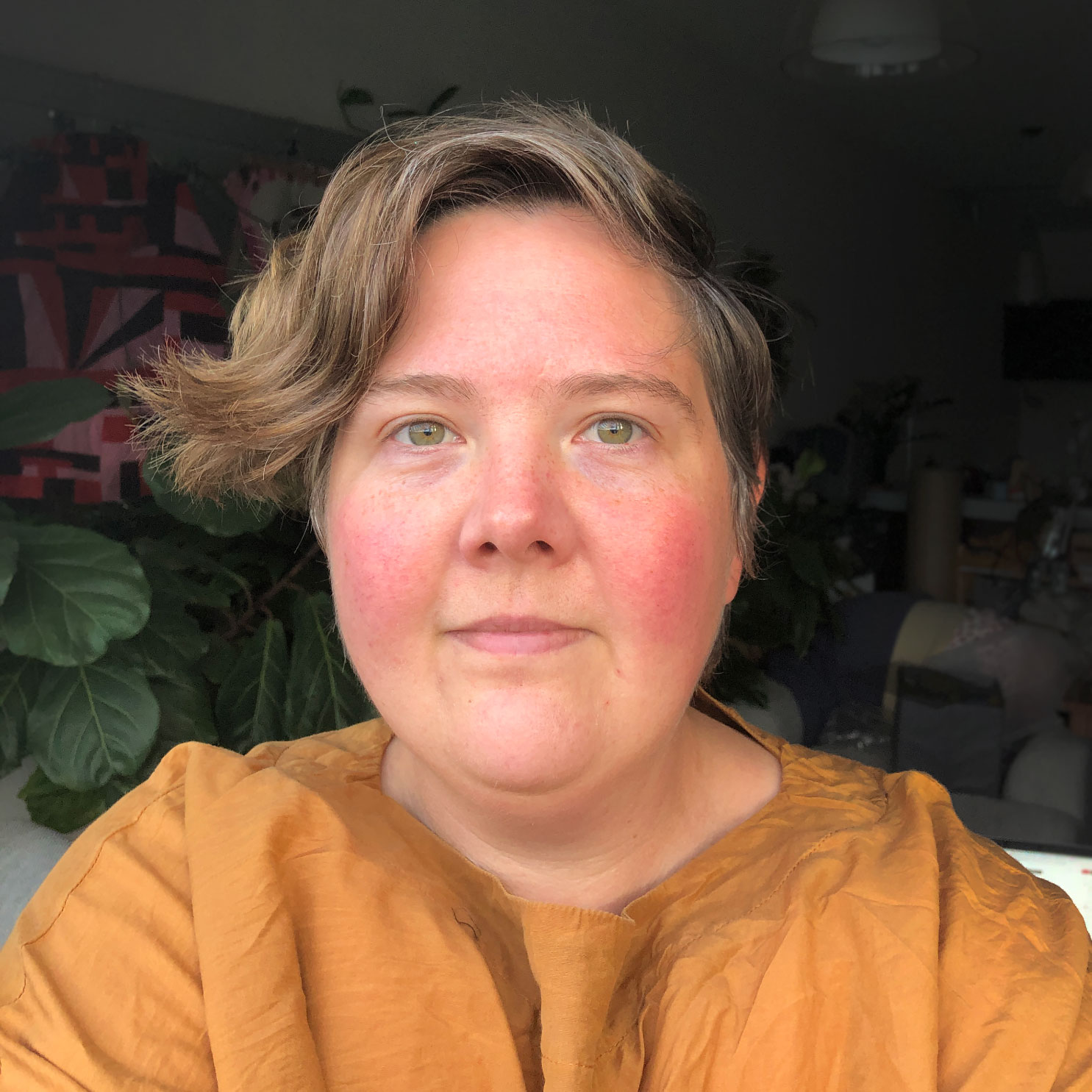 Above are 2 selfies taken 1 day apart at a very similar time of day in the same location in my apartment. On the left I’m wearing a golden coloured top that I think sits exactly in my warm autumn but low-contrast palette, and on the right I’m wearing colour that’s really not in my warm autumn scheme.